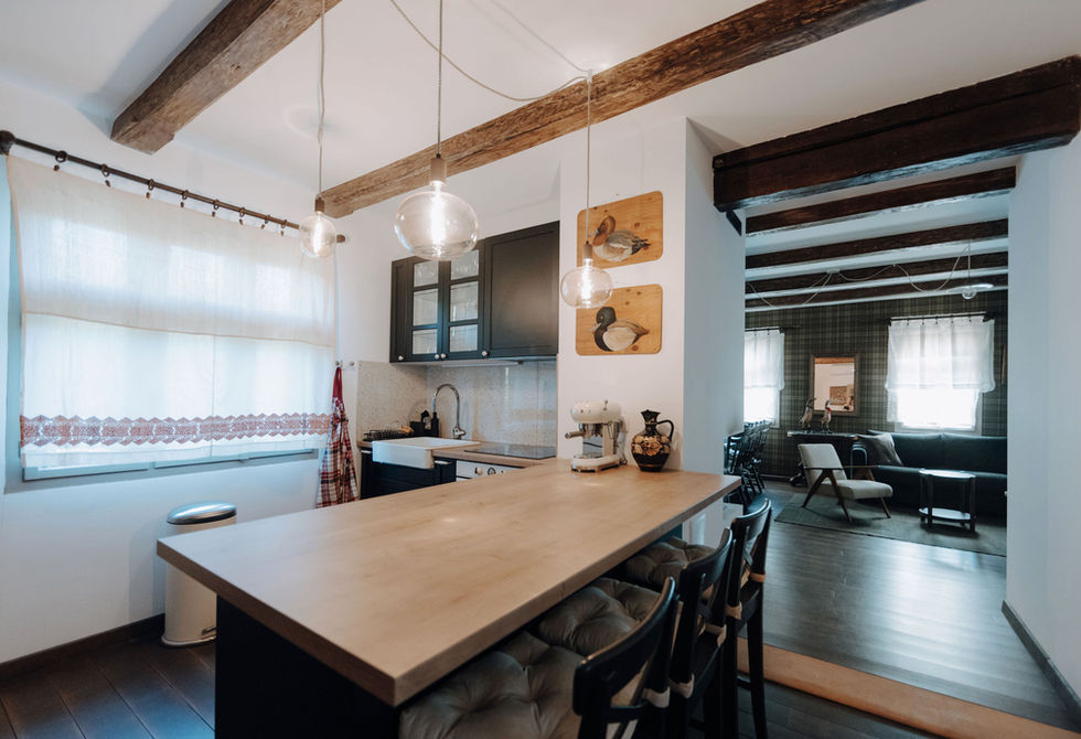 Na imanju se nalazi drvena seoska kuća iz 1931. godine, koja je uređena u moderno-rustikalnom stilu. Ova jedinstvena kuća ima sve što vam je potrebno za bijeg na selu.